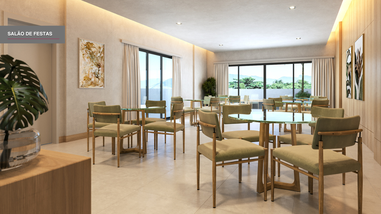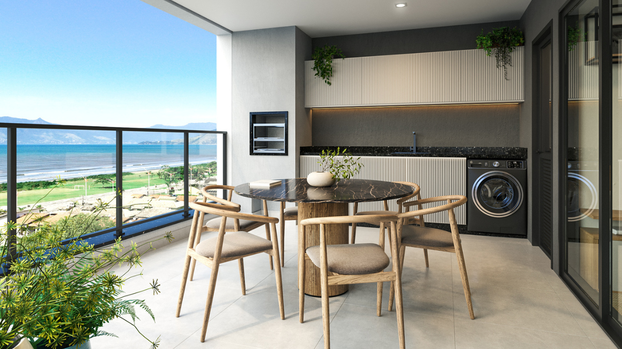 A vista 360º do Alpha Club oferece uma experiência imersiva que permite visualizar os ambientes e o entorno do empreendimento, com destaque para as perspectivas a partir do 6º andar dos blocos A e B. Essa visualização evidencia a localização privilegiada, a poucos metros da Praia do Indaiá, além da amplitude do projeto e da integração entre os espaços, ajudando o cliente a compreender melhor o panorama e a escolher a unidade ideal.